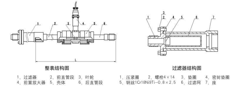 液体涡轮流量计安装注意事项 安装场所 传感器应安装在便于维修,管道无振动、无强电磁干扰与热辐射影响的场所。涡轮流量计的典型安装管路系统如图g所示。图中各部分的配置可视被测对象情况定.并不一定全部都需要.涡轮流量计对管道内流速分布畸变及旋转流是敏感的进入传感器应为充分发展管流.因此要根据传感器上游侧阻流件类型配备必要的直管段或流动调整器如表5所示。若上游侧阻流件情况不明确一般推荐上游直管段长度不小于20D.下游直管段长度不小于5D如安装空间不能满足上述要求,可在阻流件与传感器之间安装流动调整器。传感器安装在室外时.应有避直射阳光和防雨淋的措施。 ![]()
